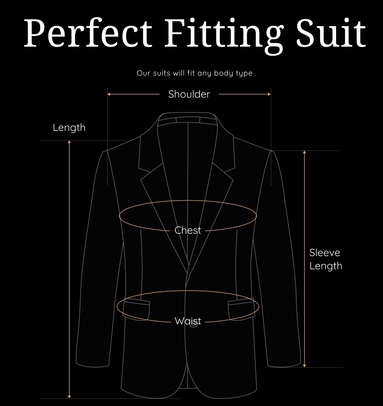 This is not an “off the rack” suit. This is a true, bespoke custom-made luxury suit. No matter how big, tall, short or slim; your suit will be made according to your unique body measurements.